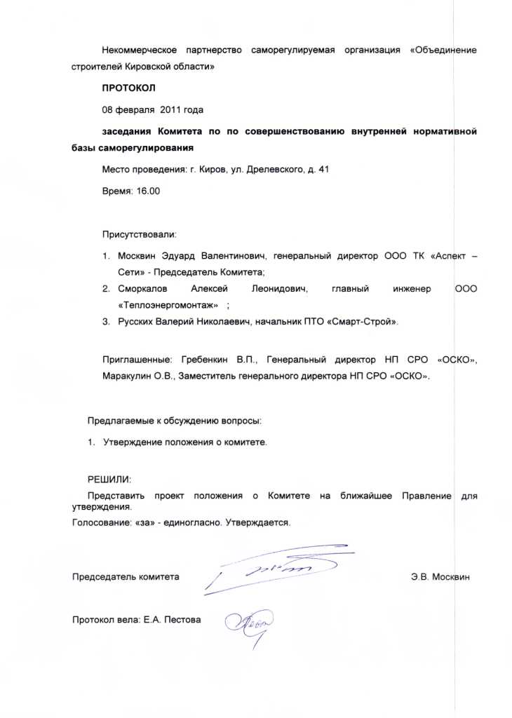Решение заседания комитета от 08.02.2011 г.